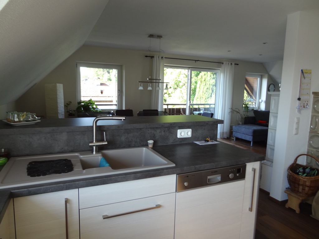 Vorrangig war neben dem Vorhaben der Bauherren den Dachbereich energetisch mit Wärmedämmung zu isolieren auch der Wunsch nach modernem Komfort und einer Lösung die separate Küche mit dem Wohnbereich zuverbinden.