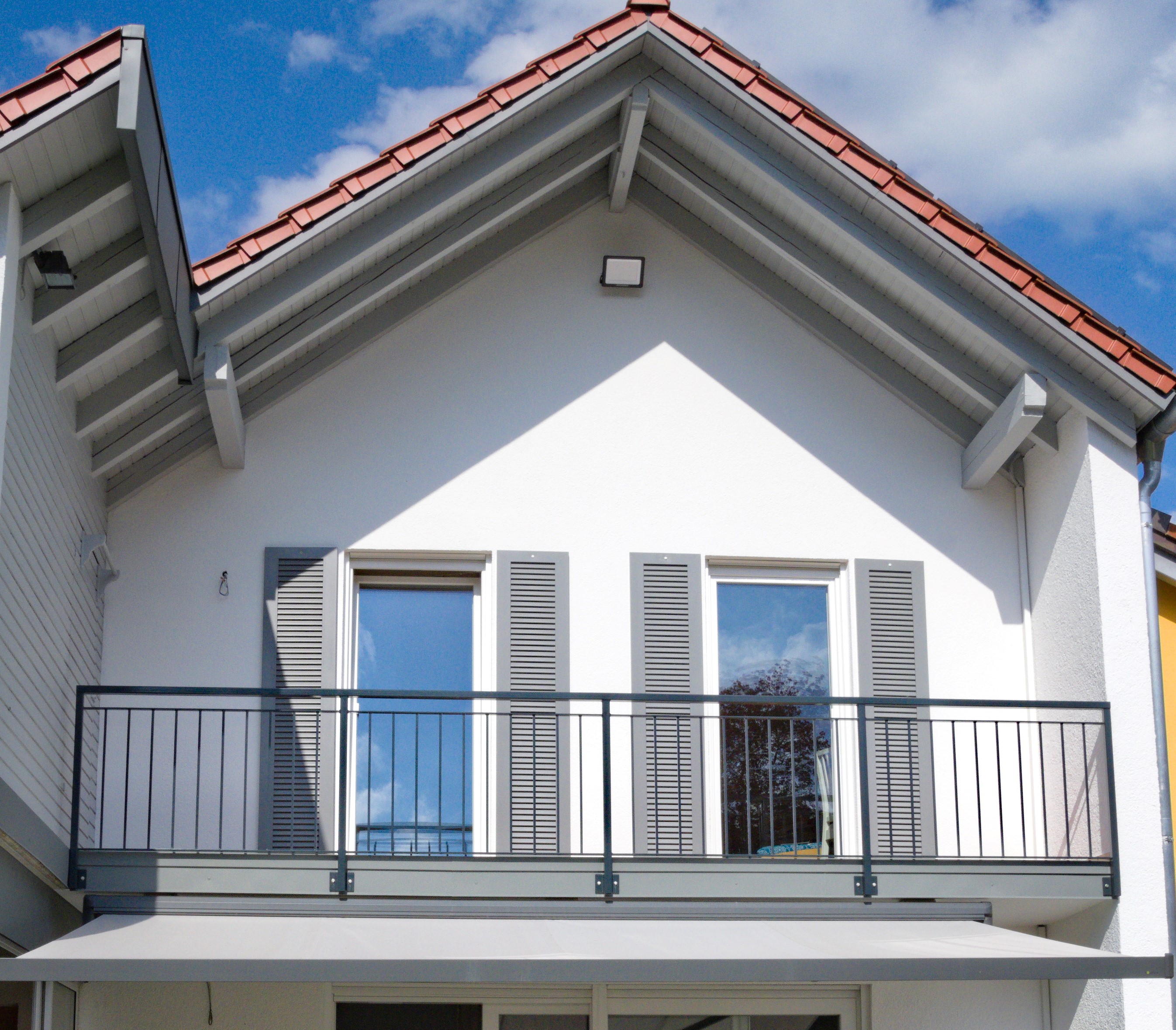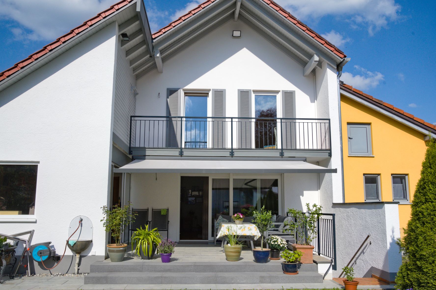 Der modernisierte Balkon, die neue Haustüre und das komfortable neue Garagentor strahlen mit dem neuen Fassadenanstrich edle Eleganz aus. Eine große Rolle dabei spielen auch die passenden neuen Fensterläden. Mit dem eigenem Katzeneingang - fühlt sich auch die Katze schon ganz heimisch und wohl im neuen Zuhause.